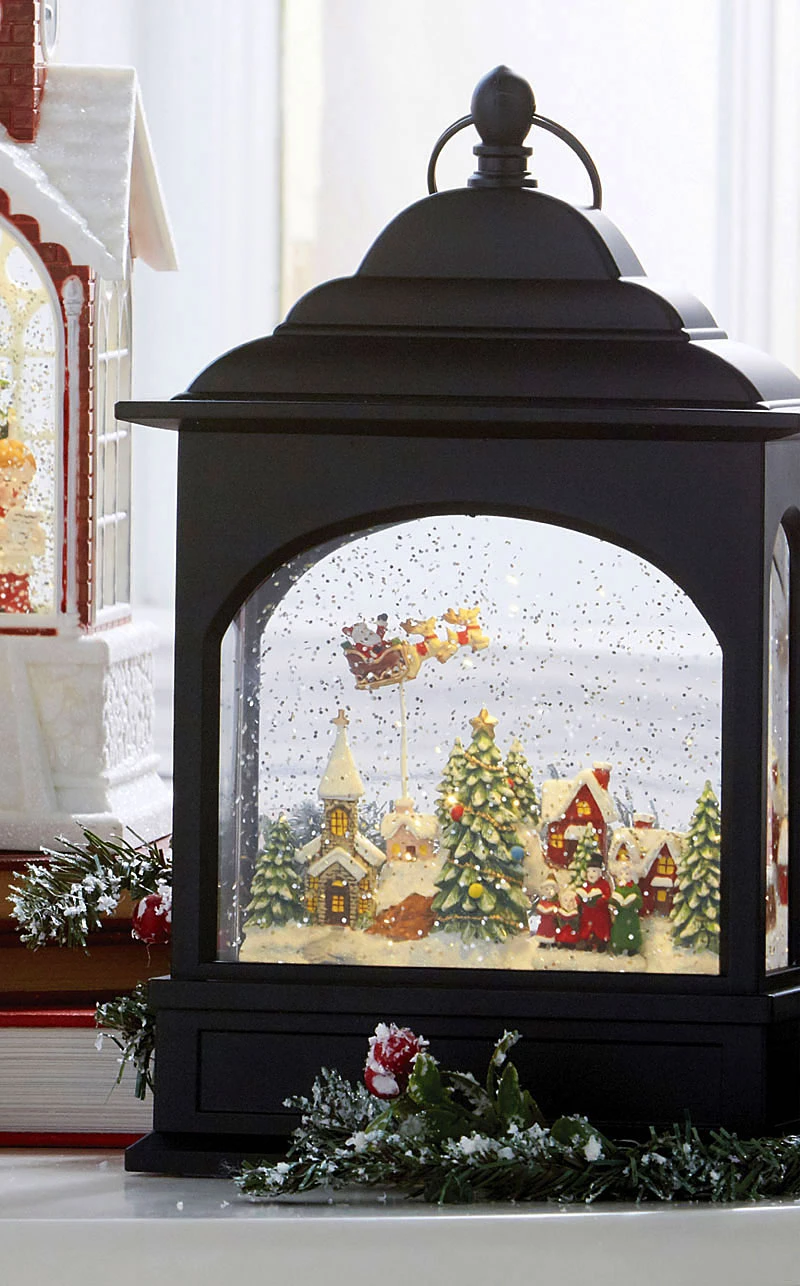 Every family must have our Snow Globe with Santa soaring into the night. Surrounded by swirling glitter, when turned on a warm LED shines down on the figurine to give our water lantern a whimsical look for the Christmas Holiday season.