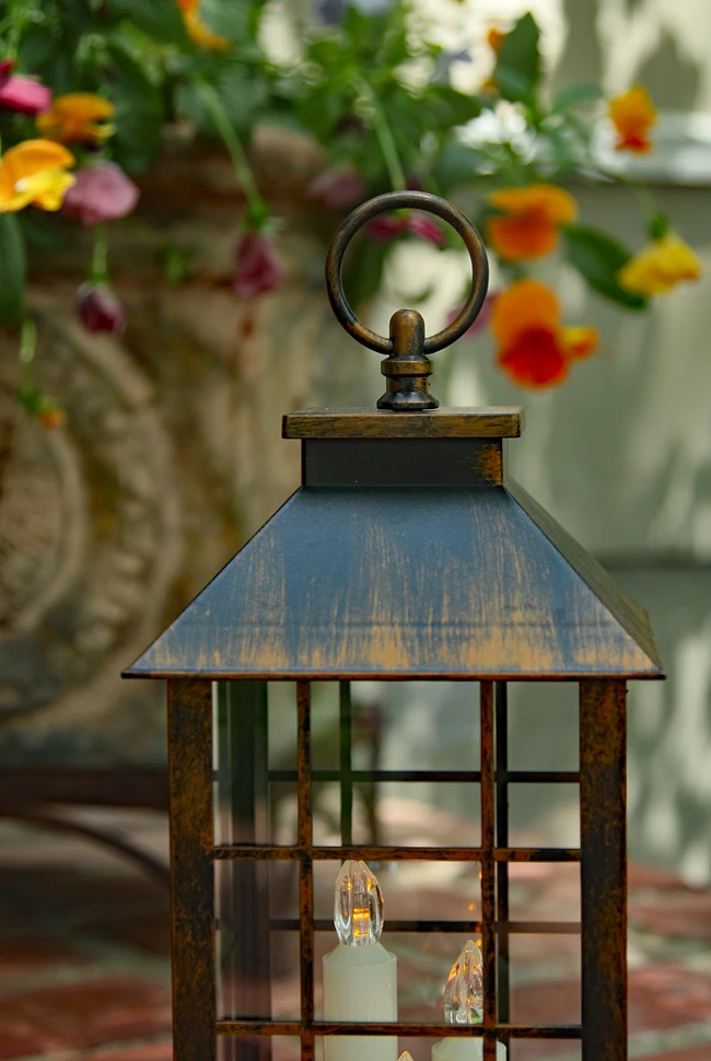 Our traditional style Mission lantern includes three taper candles with faceted tips which reflects the light inside the lantern making this a unique lantern for the any Season!