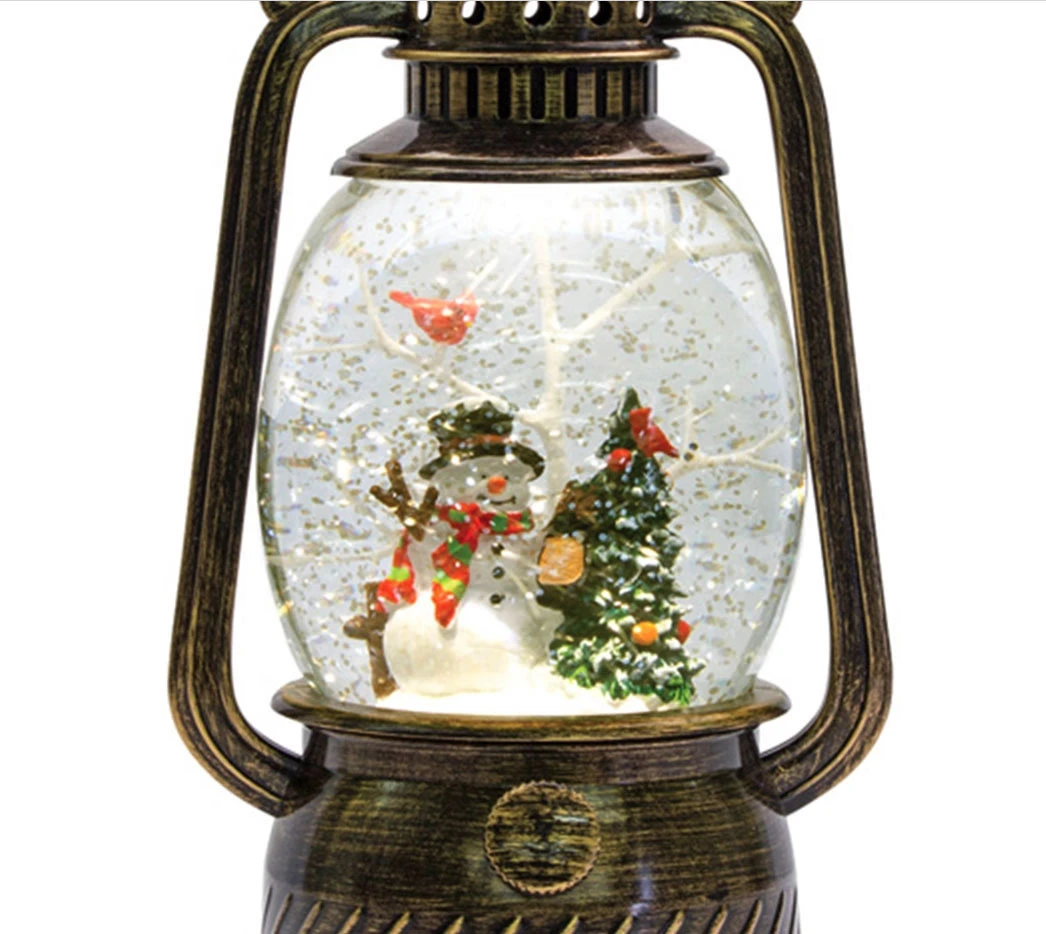 LED Lighted Church Water Lantern With Evergreens And Wreath – 10.5 Inch