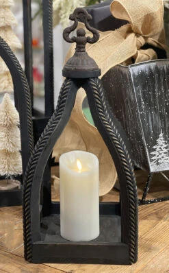 Holiday Flameless Candle Lantern With Pinecone Decor – 11 Inch