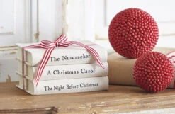 Stacked Christmas Books With Red And White Ribbon – Set Of 3, 8 Inch