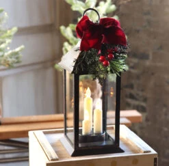 Holiday Flameless Candle Lantern 3 Tapers – Antique Bronze 12.5 Inch