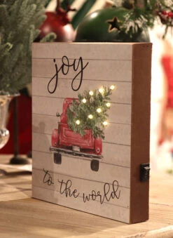 Battery Operated Lighted Wood Block Christmas Sign – 8.5 Inch