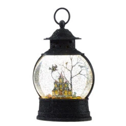 10 Inch Lighted Haunted House Water Lantern In Swirling Glitter