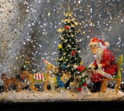 Santa Decorating Christmas Tree Woodland Carved House With Ivy Lighted Water Lantern