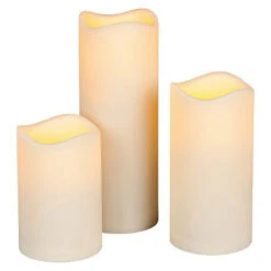 4.5 Inch Diameter Set Of 3 Flameless Large Outdoor Resin Candles – Timer Batteries Include