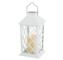 Blue Battery Operated Lighted Wood & Metal Americana Hologram Lantern – 13 Inch