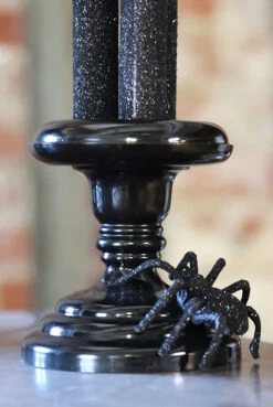 14.5 Inch LED Black Glitter Lighted Halloween Three Candelabra With Spider