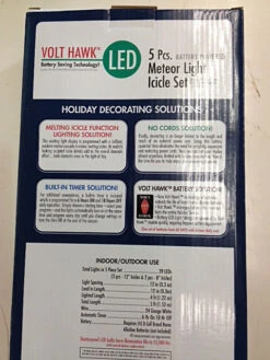 NO CORDS! Now you can decorate anywhere! Volt Hawk – battery powered LED meteor light set runs 90 days on 4 D batteries using 6 hour timer feature.