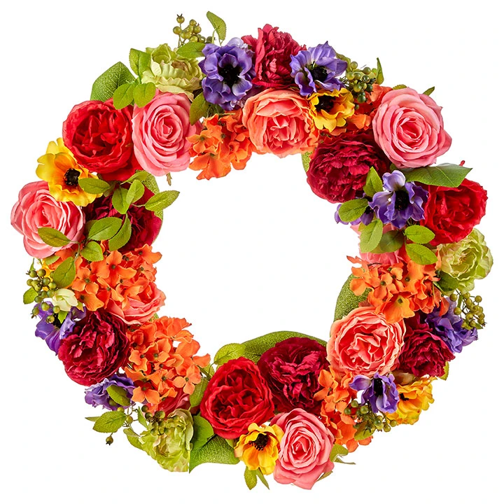 Hang inside above your fireplace or add to your Easter or Spring decor, made of polyester . Our new 24 inch floral Spring wreath with an assortment of flowers and greenery.