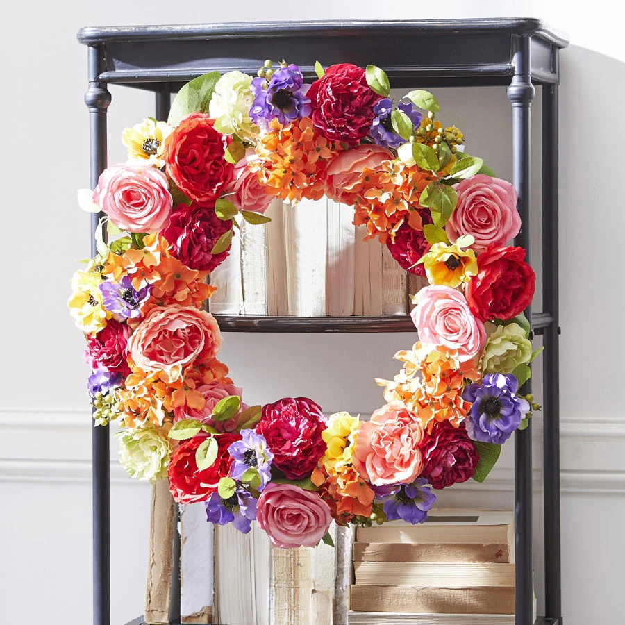 This big bold beautiful wreath. Roses, hydrangeas, greenery and more.