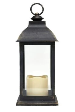 Set of 3 antique white metal lanterns, 14, 17 and 20 Inch Tall. Crafted of metal and glass, our lantern brings the sparkle and warmth of candlelight to your home. Use on your tabletop, cabinet, or as a decorative lamp next to your fireplace.
